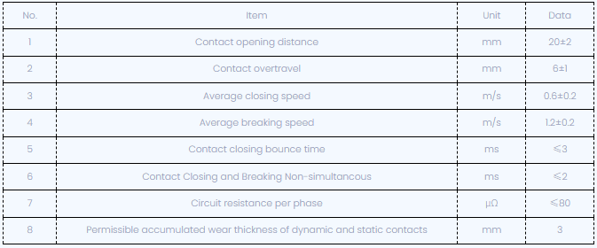 Tar éis an breaker ciorcaid a choigeartú, taispeántar na paraiméadair thréithiúla mheicniúla thíos: