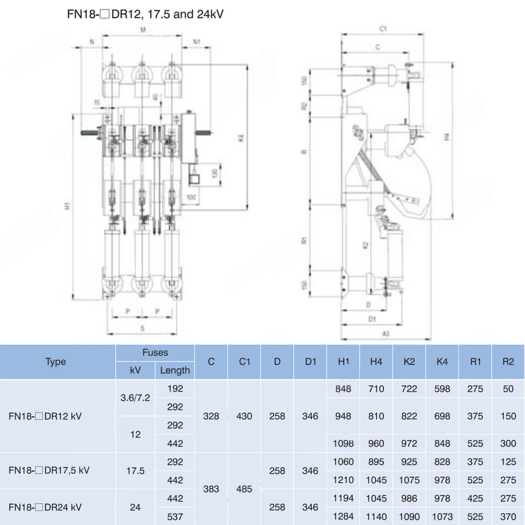 FN18 12KV 3 Céim Céim a fheidhmíonn lasc sos aeir le feiste créithe agus lasc fuse nalf nalf