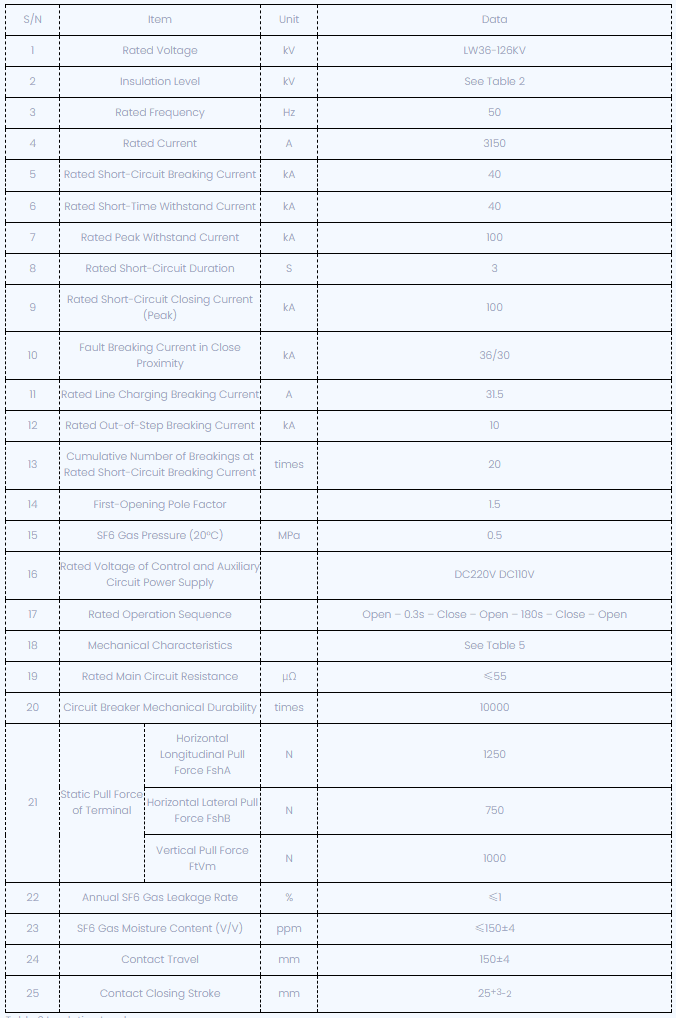 Baineann an táirge seo úsáid as gás SF6 mar mheán múchta agus inslithe ARC araon. Tá an teicneolaíocht múchta stua féinfhuinnmhithe is déanaí ann agus tá meicníocht nua á oibriú ag an earrach ann. Tairgeann an LW36-126/3150-40 saol leictreach fada, iarracht oibríochta íseal, torann íseal, agus iontaofacht ard, rud a fhágann gurb é an rogha is iontaofa é do cheantair ard-airde nó córais cumhachta 132kV. Is féidir leis freisin táirgí allmhairithe den chineál céanna a athsholáthar freisin.