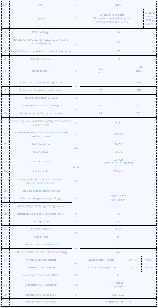 Briseoir ciorcaid taobh-suite VSG-24C le cuaillí leabaithe le haghaidh trealamh ardvoltais 24kV