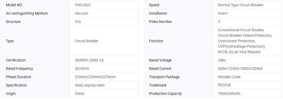 VSG-24C Tá breaker ciorcad folúis ardvoltais faoi dhíon oiriúnach do chóras cumhachta trí chéim AC 50 (60) Hz, 24kV, le haghaidh fiontair thionsclaíocha agus mianadóireachta, gléasraí cumhachta agus fostáisiúin mar lasc idir an t-ualach reatha, an sruth ró-ualaigh agus an sruth locht. Tá sé oiriúnach le haghaidh ócáidí oibríochta go minic. A úsáidtear go forleathan i ngléasraí cumhachta, greillí cumhachta, peitriceimiceáin, miotalóireacht, fobhealaí, aerfoirt, foirgnimh agus tionscadail eile.